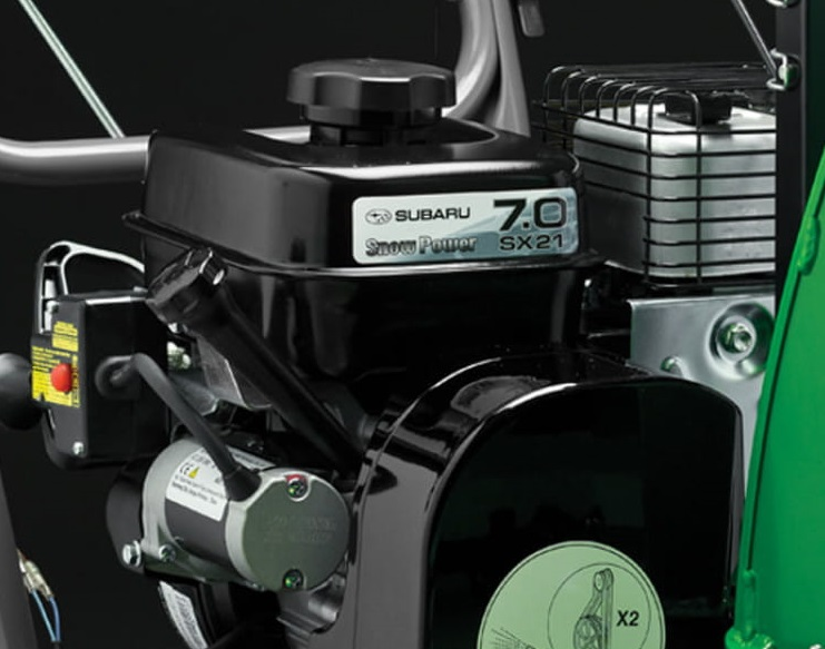 - На снегоуборщике установлен двигатель Subaru SX21 Snow Power. Мощность мотора составляет 7 л.с. с объемом 211 кубов. Этого достаточно для того, чтобы справиться со сугробами глубиной 60 см. Двигатель оснащен цепным привод газораспределительного механизма и другими необходимыми деталями, которые позволяют снегоуборочной машине справляться со своей работой качественнее и быстрее.