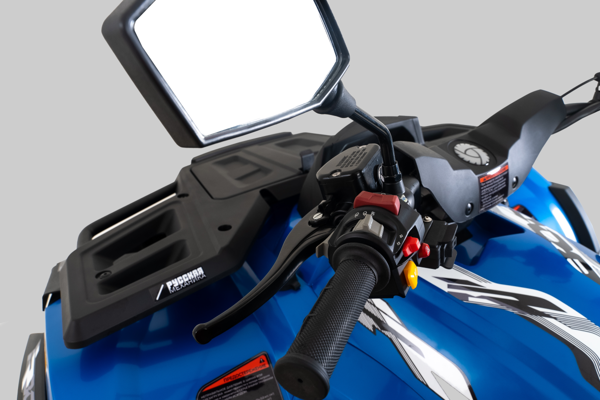 Специально для модели РМ 800 Т конструкторами «Русской механики» была создана принципиально новая платформа. Рама, подвески, органы управления, уникальные настройки ЭБУ двигателя с вариаторной трансмиссией — абсолютно всё проектировалось, чтобы сделать квадроцикл лёгким и всепролазным. Чтобы на маршруте любой сложности водитель не уставал от управления, а получал только удовольствие.