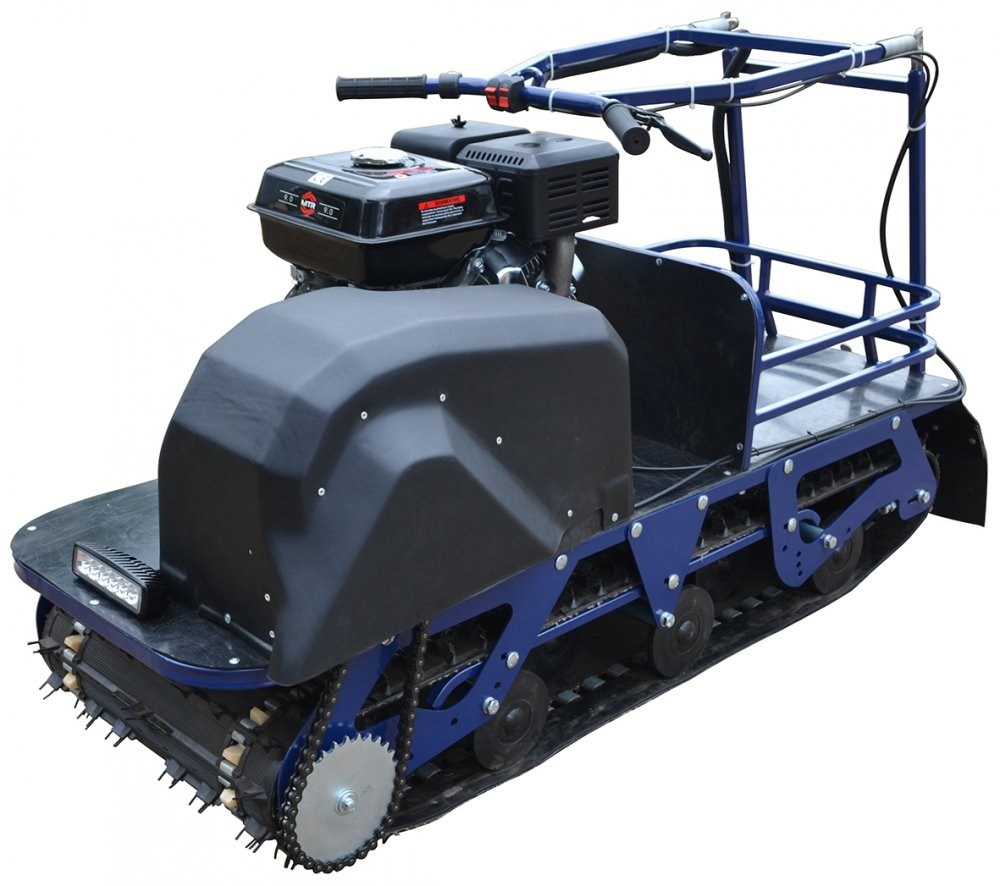 - Возможность менять склизовую подвеску на катковую делает технику универсальным средством. Чека аварийного отключения и прочный бампер из ПНД придают дополнительную защиту в случае неожиданных ситуаций.