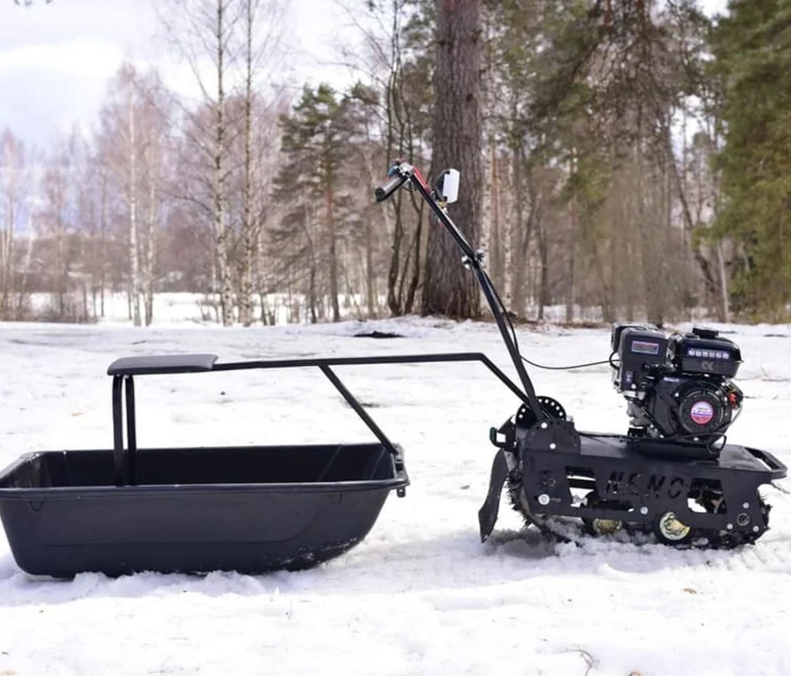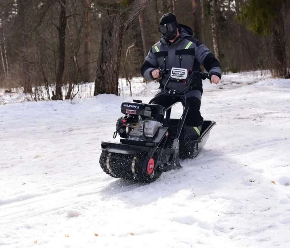 Благодаря гусеничной ленте мотособака бойко проходит по умеренно глубокому снегу. Следует избежать крайне детских покрытий, поскольку сани могут повредиться.