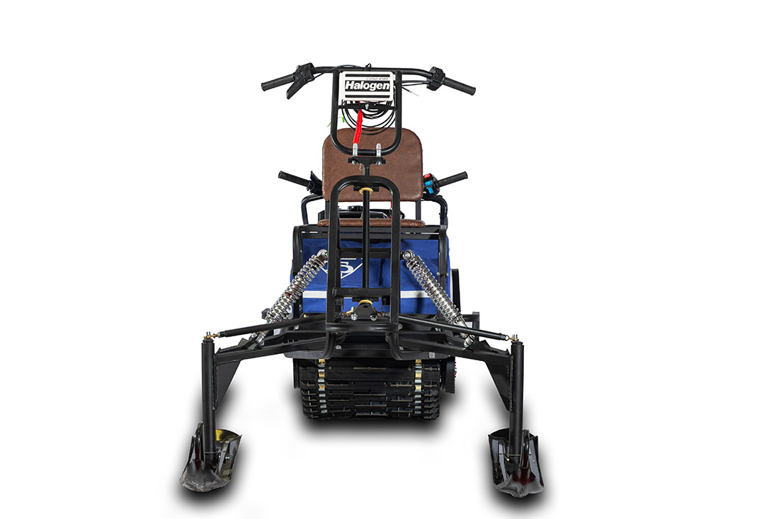 Ширина гусениц (50 см) позволяет захватить большую площадь дороги, удерживая агрегат на поверхности снежного покрова. Для поездок вне светового дня в рулевую часть встроен галогеновый прожектор.