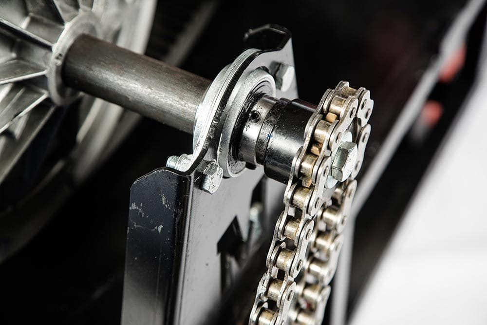 - Проходимость. Не застрять в снегу + не скользить на льду помогает гусеничная лента шириной 50 см и передний привод.