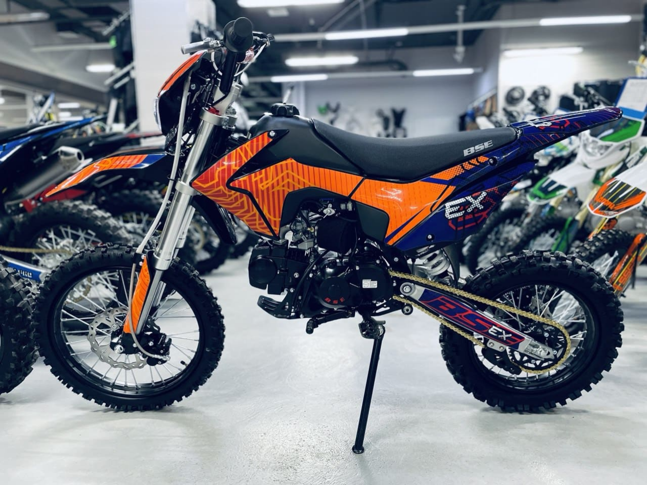 EX125 - лидер в классе питбайки! Построен на шасси проверенного и надежного DX и оснащен самым необходимым для активного катания: мощный 4-х тактный двигатель Zonghshen с воздушным охлаждением, прочная стальная рама, электростартер и диодная фара головного света! Карбюратор Jingke PZ 26 прост в настройке и обслуживании. Энергоемкая подвеска справляется с любыми неровностями. Мощная гидравлическая тормозная система для эффективного и прогнозируемого торможения. Яркий и современный.