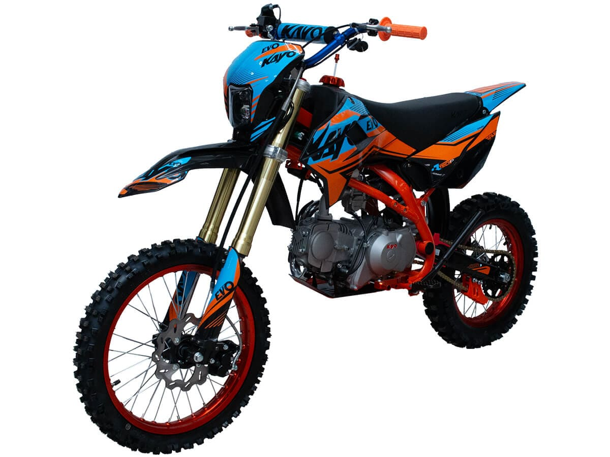 Питбайк KAYO Evolution K125EM KRZ – идеальный снаряд для наработки первого опыта в мотокроссе и эндуро, который можно использовать на лёгких кроссовых трассах и дорогах с различным покрытием. Удобный, простой и надёжный мотоцикл, который полностью оправдывает свою цену.