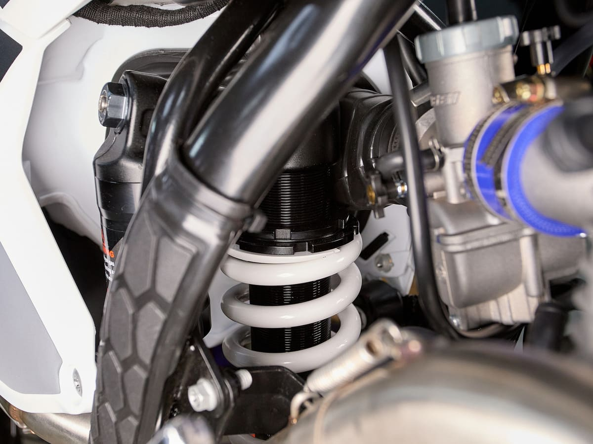 Ёмкость бака 7 литров. Хватит даже для длительных заездов. Специализированную эндуро подвеску от компании KKE можно отрегулировать под ваши потребности. Спереди представлена телескопической вилкой перевёрнутого типа длиной 910 мм. Сзади – моноамортизатором длиной 450 мм. В паре они позволяют эффективно амортизировать удары при езде по неровностям и прохождении препятствий.