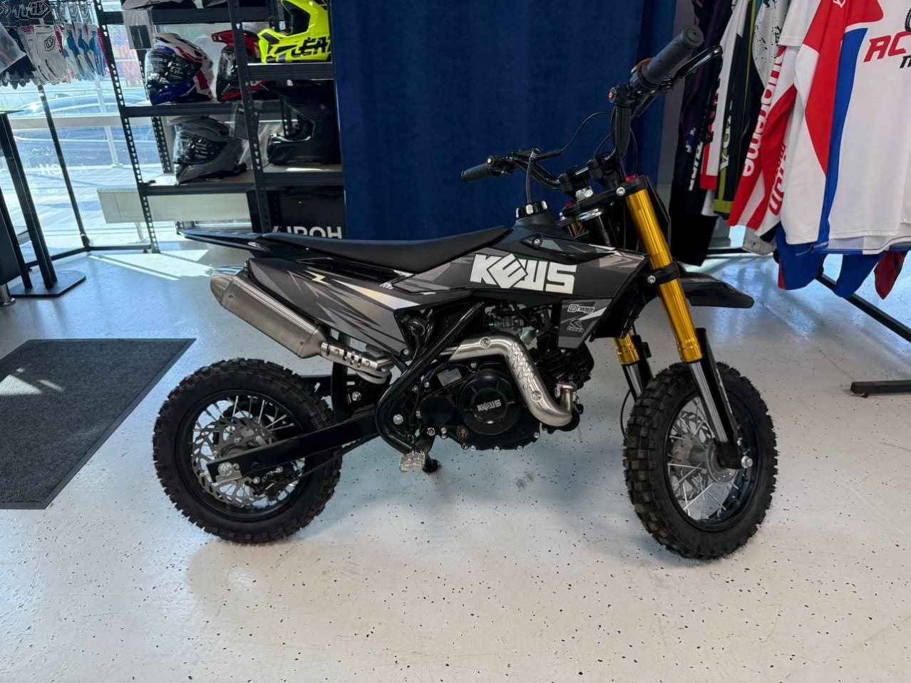 KEWS K60-ZL60 — это детский мотоцикл, созданный специально для самых маленьких! Он подходит для детей в возрасте от 3 до 6 лет. Мотоцикл очень легкий, его сухой вес составляет всего 40 кг. Модель K60 оборудована надежным одноцилиндровым 60-кубовым двигателем с воздушным охлаждением, который отличается высокой надежностью. Электрический стартер и автоматическая коробка передач с центробежным сцеплением значительно упрощают использование мотоцикла. Яркий дизайн и внедорожный стиль обязательно привлечет внимание любого ребенка. K60 станет первым шагом вашего ребенка в мир большого мотоспорта