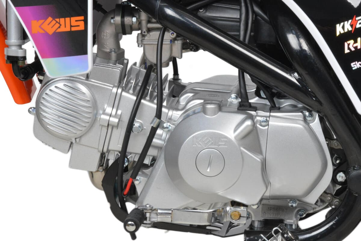 Питбайк оснащён карбюратором NIBBIPE22 и одноцилиндровым четырёхтактным двигателем с воздушно-масляным охлаждением. Надёжный мотор 1P56FMJ мощностью 11 л. с. и объемом 140 см3