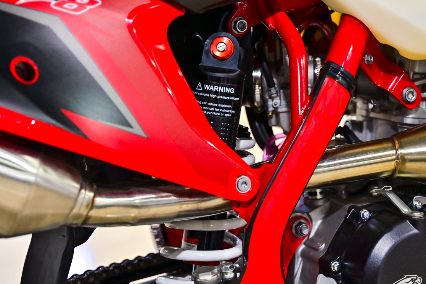 Защиты: В наличии радиаторов, двигателя и рамы, что увеличивает безопасность и защищает важные узлы мотоцикла при езде по сложным трассам.