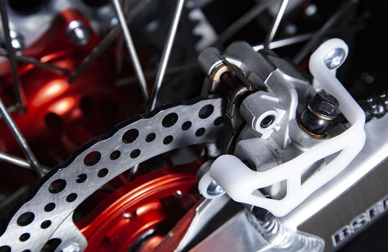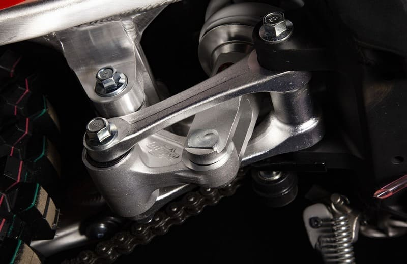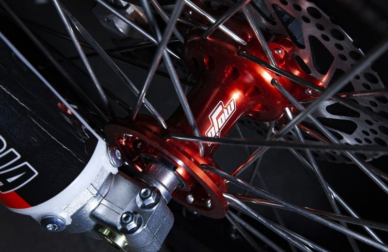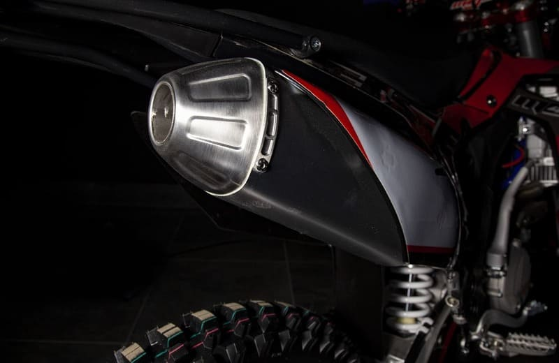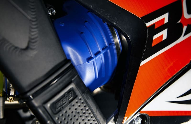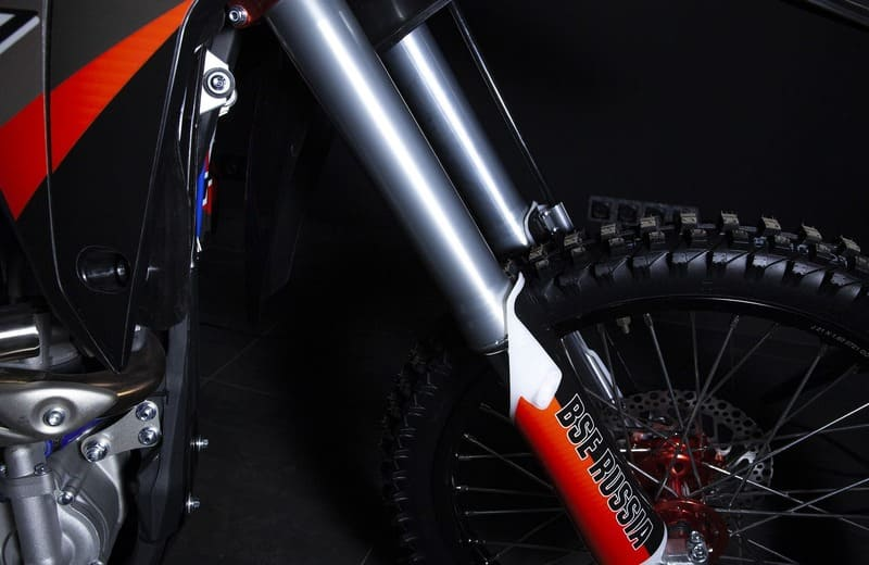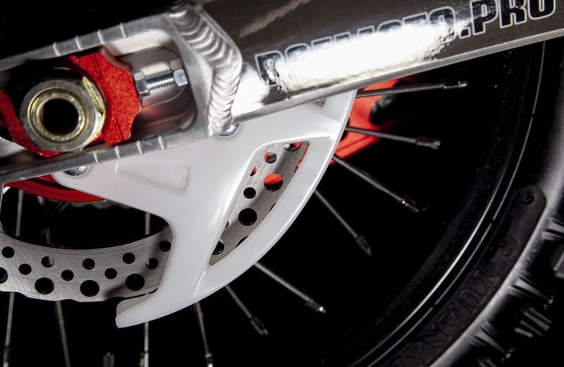 На мотоцикле установлено все необходимое для оффроуда: литые рычаги задней прогрессии, алюминиевый маятник, прочный задний бугель, “злая” внедорожная резина. А также: усиленные легкосплавные колёсные диски MOJO, усиленная цепь, защита рук, датчик моточасов, прочные алюминиевые облегченные ступицы MOJO, складные СNC рычаги тормоза и сцепления, колесные подшипники NTN, защита коллектора, картера двигателя и тормозных дисков. Мощная гидравлическая тормозная система HSК Racing с тормозными дисками с увеличенной вентиляцией остановит байк в любых условиях.