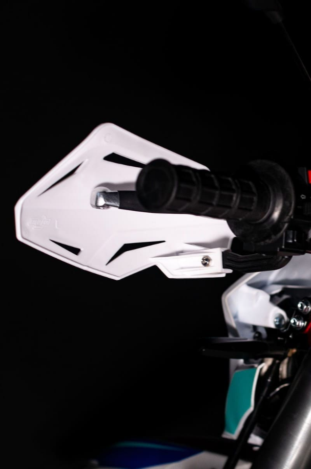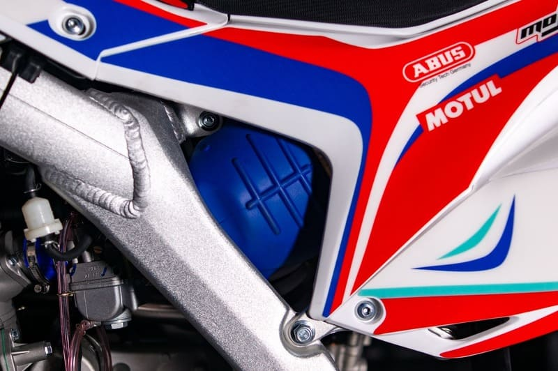 На мотоцикле установлено все необходимое для оффроуда: вилка “перевертыш”, литые рычаги задней прогрессии, алюминиевый маятник, прочный задний бугель, “злая” внедорожная резина Kenda. А также: усиленные легкосплавные колёсные диски MOJO, усиленная цепь, защита рук, датчик моточасов, прочные анодированные CNC ступицы, колесные подшипники NTN, защита коллектора, картера двигателя и тормозных дисков. Мощная гидравлическая тормозная система HSК Racing остановит байк в любых условиях.