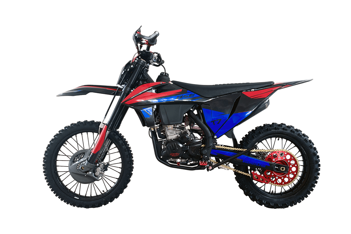 Ещё одна особенность модели Т7 – стальная рама, которая полностью соответствует всем стандартам самого известного австрийского бренда мотоциклов для кросса и эндуро – KTM. Единая геометрия, эргономика, пропорции и углы вылета вилки. Высококачественная сталь, малый вес и большой запас прочности, идеальная развесовка. Мотоцикл оснащен легким алюминиевым подрамником, системой прогрессии и пластиковой защитой мотора. Установлен новый тип пластика, прочный, легкий и современный.