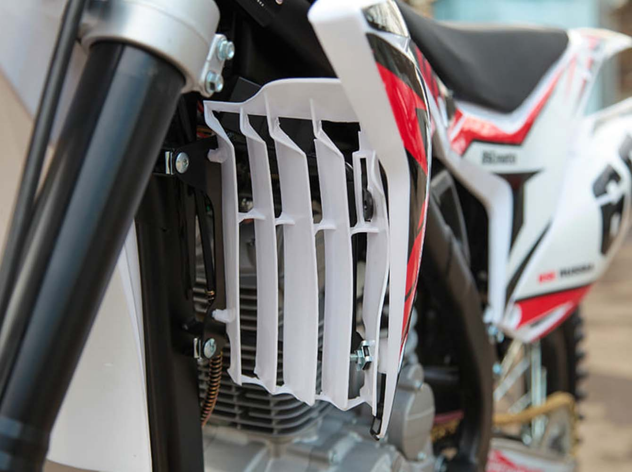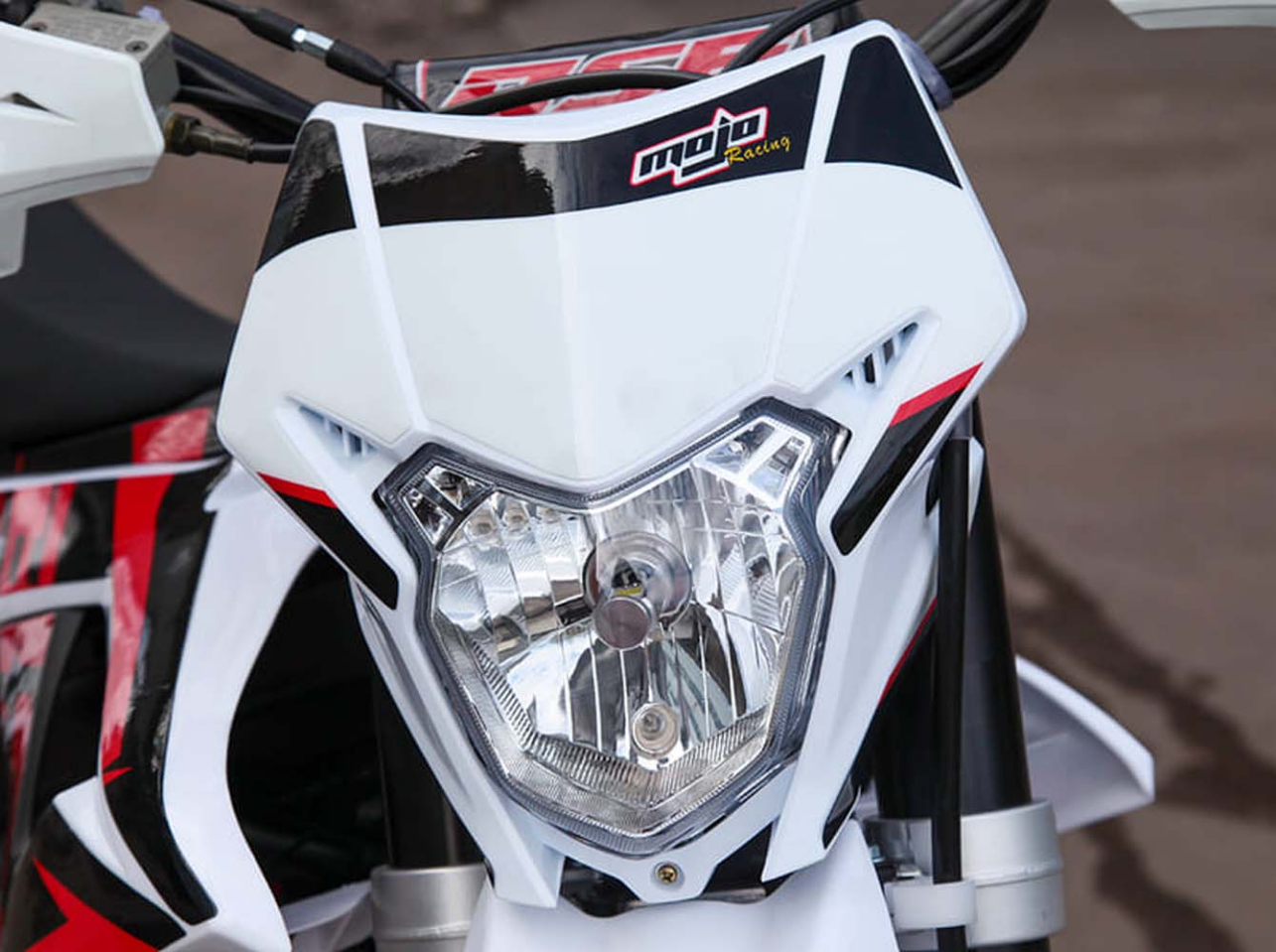 В мотоцикле есть все необходимое для комфортного передвижения по бездорожью – электростартер, яркая LED фара головного света, удобное сиденье, широкий спортивный алюминиевый руль, защита рук, датчик моточасов.