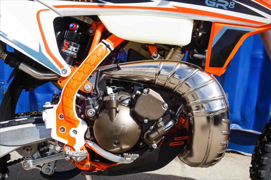Силовая установка GR8 Enduro PRO базируется на одноцилиндровом 2-тактном двигателе с жидкостным охлаждением LONCIN MT250, который готов выдавать 37 лошадей пиковой мощности. Это лицензионный аналог известного мотора Yamaha DT230 Lanza с 6-ступенчатой коробкой. Подготовка топлива поручена KEIHIN PWK 33 - надежному и производительному карбюратору с плоской дроссельной заслонкой и диффузором в 33 миллиметра, который полностью обеспечивает потребности данного мощного двигателя.