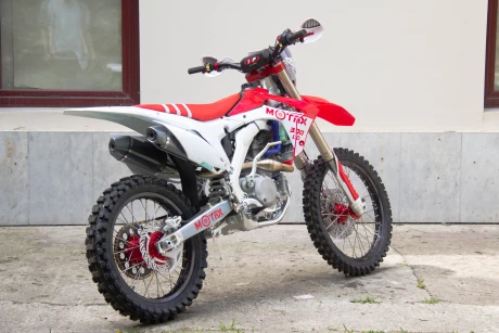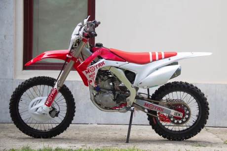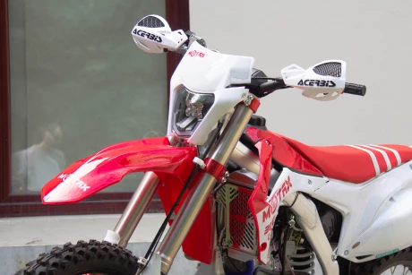 В этом сезоне Motax представил множество моделей кросс и эндуро мотоциклов. И вот одна из новинок, перед вами - MOTAX LD 300, в ярко красном цвете. Рама AJ1® повышенной прочности из “отливок” алюминия 6063, полноразмерная, сбалансированная. Двигатель 4 тактный ZS 300сс AJ1® с водяным охлаждением и расширительным бачком. Карбюратор NIBBI RACING 34. Коробка передач механическая, шестиступенчатая. Мощность мотоцикла 34 л.с. Усиленные алюминиевые колеса, повешенной прочности. Фара LED, счетчик моточасов, электростартер. Комплектация богатая и радует своим исполнением: CNC траверсы и ступицы, подножки, крышка бака. Спортивный CDI, рычаги IGP (складные). Тормозная система NISSIN. Выхлопная система копия FMF с Power Bomb.