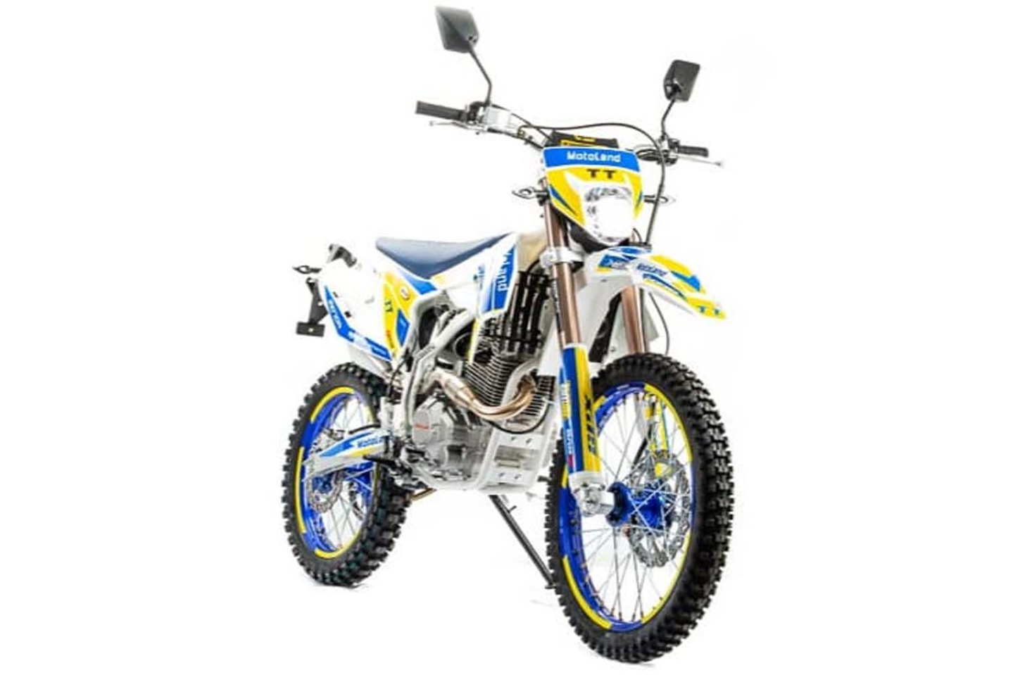 Купить Motoland 250 XR250 в стандартной комплектации будет неплохим решением для всех, кому нужен недорогой кроссовый мотоцикл, подходящий для езды по бездорожью, без выполнения прыжков и базовых трюков. Хорошее качество сборки и доступные цены на комплектующие позволяют поддерживать технику в исправном состоянии без больших затрат при любой интенсивности эксплуатации. Масса мотоцикла составляет порядка 130 кг. Габариты довольно большие – длина составляет 2000 мм., а высота по седлу – 920 мм., ширина руля 830 мм. поэтому он отлично подойдет для тех, кто имеет рост от 175 см и выше.