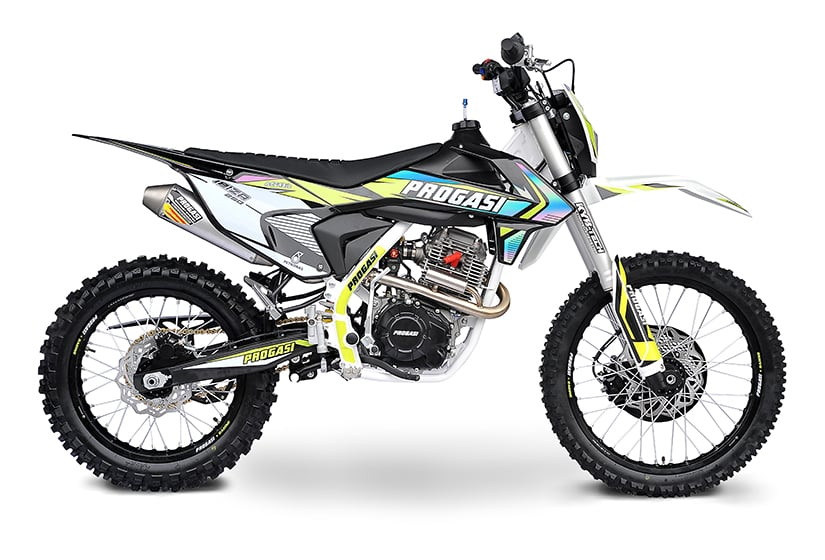 Дополнительный расширительный бачок тормозов. Тормоза важнейший компонент питбайка, от которого напрямую зависит безопасность райдера, а также скорость прохождения поворотов. На всех моделях PROGASI установлены дополнительные расширительные бачки и армированные шланги тормозной системы для безупречного результата. Спереди установлена двухпоршневая тормозная система и однопоршневая - сзади.