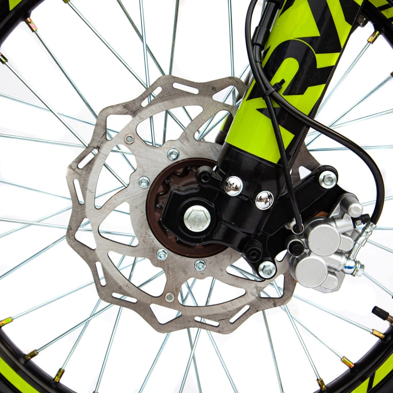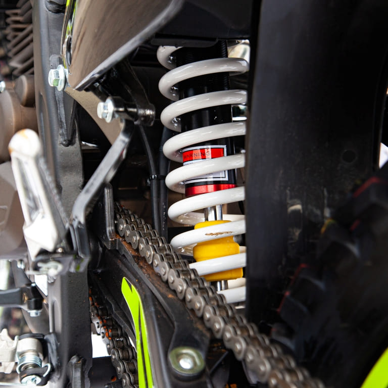 В основе конструкции Regulmoto ZR 250 Enduro – мощная стальная рама, поставленная на колеса 21/18, которые наилучшим образом подготовлены к офф-роаду. Ободья и ступицы колес изготовлены из алюминия, также установлены усиленные спицы и буксаторы, надежно фиксирующие покрышки на ободе. Подвеску эндуро-байка представляют длинноходная телескопическая вилка-«перевертыш» спереди и стальной маятник с прогрессией и моноамортизатор с компенсационным резервуаром сзади. Работу амортизаторов при необходимости можно настроить при помощи регулировки сжатия/отбоя.