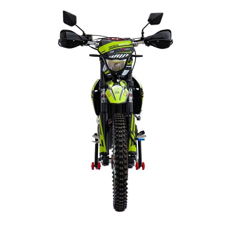 Regulmoto ZR 250 PR Enduro также привлекает внимание отличными внешними данными: мотоцикл комплектуется крепким и гибким пластиком с ярким дизайном, выполненным в узнаваемой стилистике популярной модели известного производителя. Подбор качественных компонентов также заслуживает внимания: