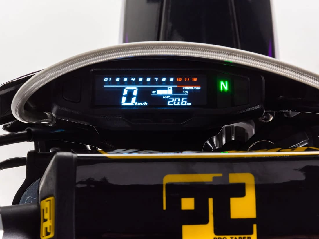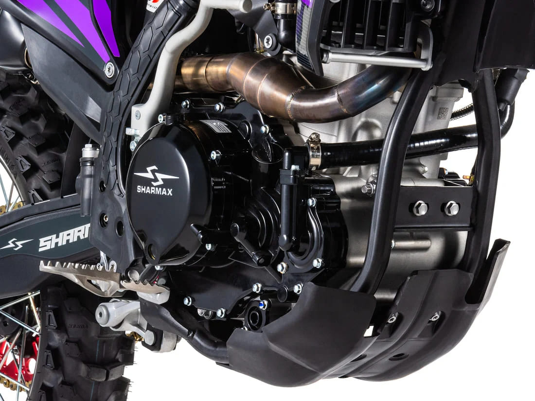 Нереально мощный 4-тактный двигатель ZS194MQ стал самым мощным во всей истории Sharmax Motors. 44 л. с. и 449 кубов обеспечат быстрый разгон с первых метров дистанции. За цепь не переживайте, даже от такого резвого мотора 520 Choco Gold не порвётся. Этот силовой аппарат сделан, чтобы показать соперникам кто главный на треке.