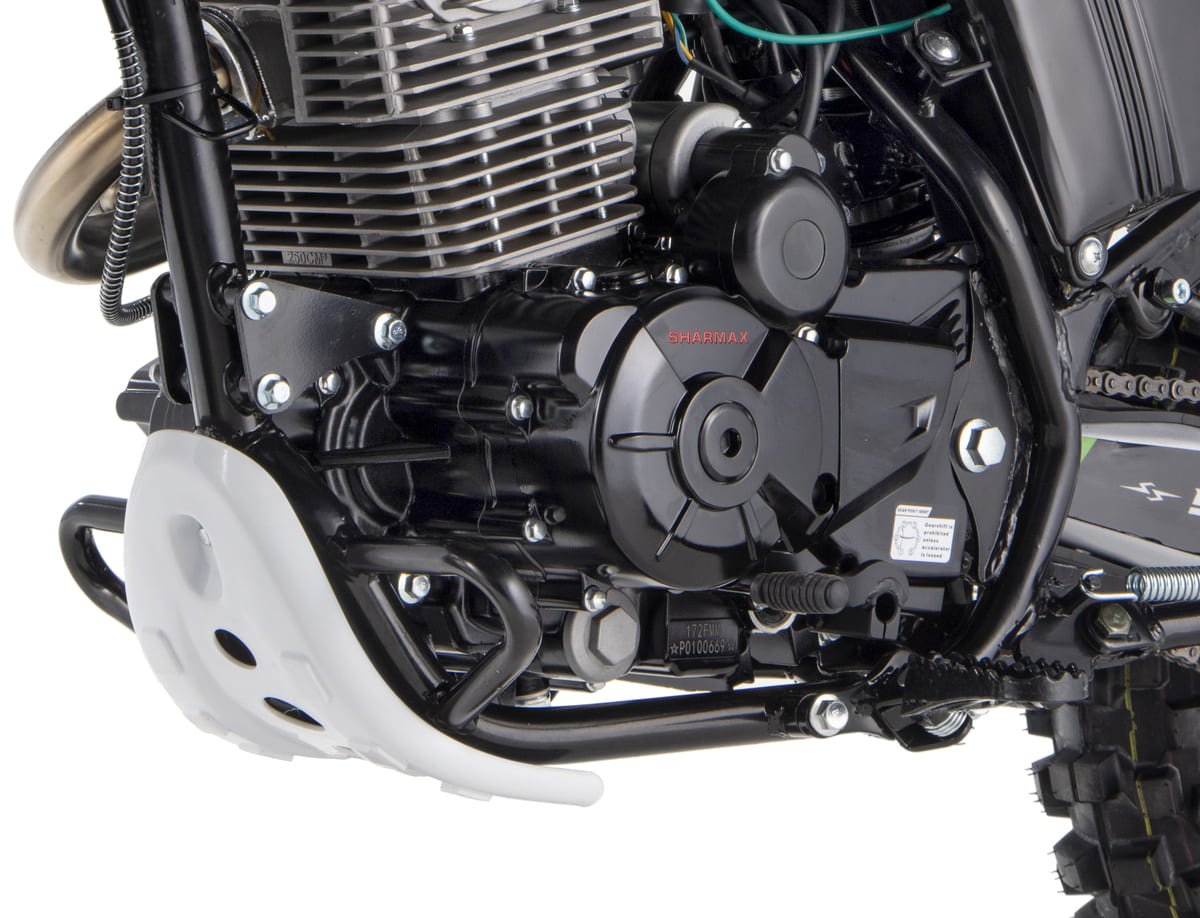 Sharmax Sport 280 PR оборудован системой воздушного охлаждения. Нет громоздкого радиатора, вес байка стал меньше, управляемость — лучше. Просто нажмите на газ — и вперёд! За температуру не переживайте — не перегреетесь.