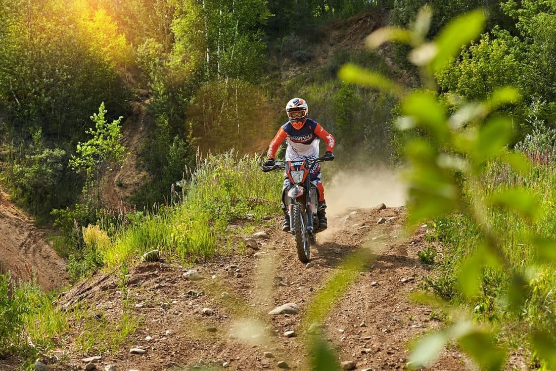 Подвеску Sharmax Power Max 280 можно настроить под грязь, камни и песок без потери качества. Передняя вилка фирмы KKE имеет регулировки сжатия и отбоя, задняя (KKE) — справится с любыми преградами, от камней до деревьев. Байк легко настроить под свой вес, подобрав идеальный баланс жёсткости.