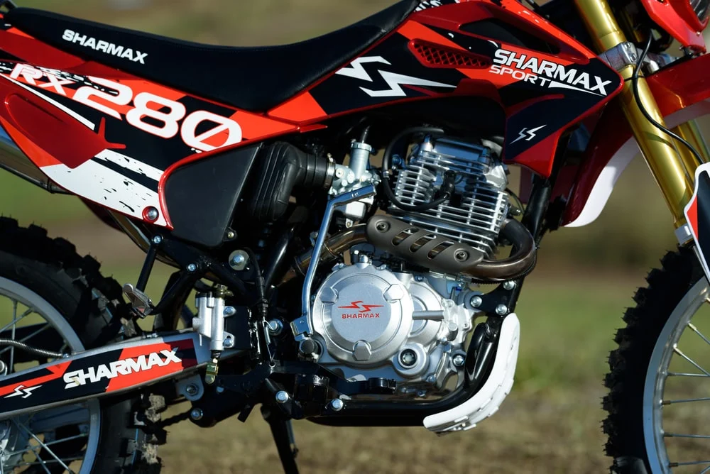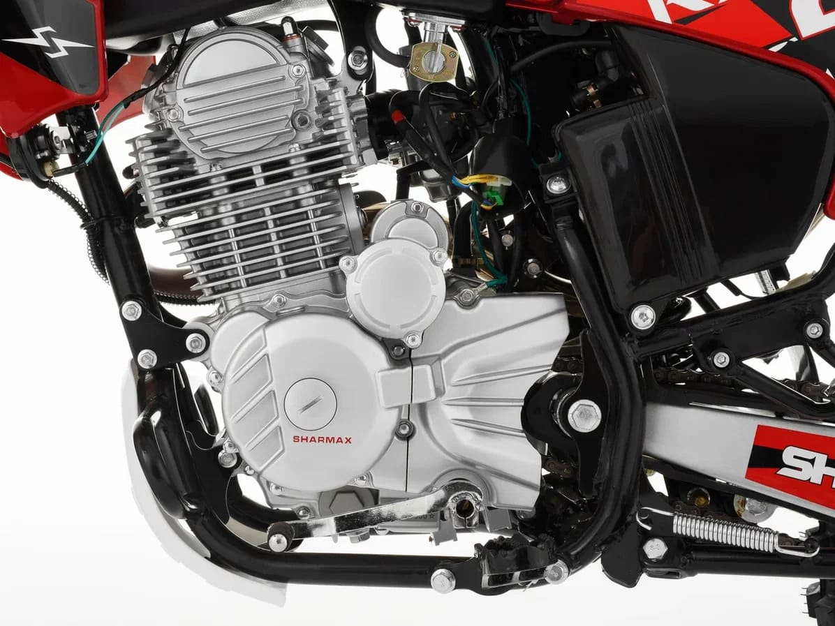 Мощный и надежный двигатель ZS250FMM на 250 кубов, мощностью 23л.с. с воздушным охлаждением и 5 ступенчатой трансмиссией, в паре со спортивным карбюратором Nibbi Racing 30 и выхлопом Sharmax Exhaust System обеспечивает идеальное сочетание. Хромомолибденовая рама SHARMAX SPORT 280 изготовлена из стали AJ1 сделана с упором на надёжность прочность, жесткость и долгий срок службы. Все узлы качественно проварены, есть дополнительные усиления.