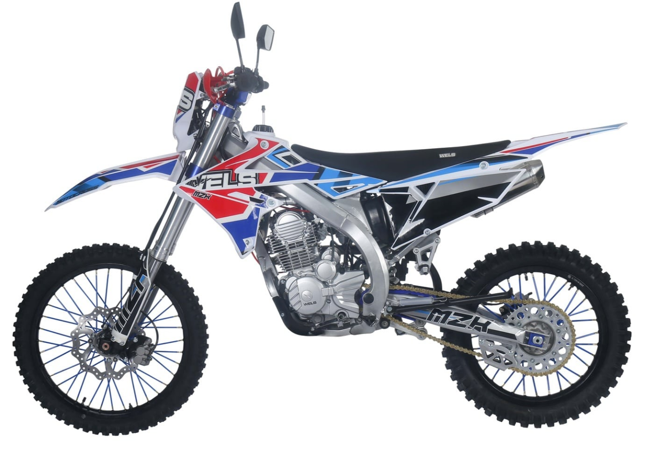Свежий эндуро Wels MZK 250СС с мотором 172 FMM, алюминиевыми ободами, линзованной черной фарой и 520 приводной цепью