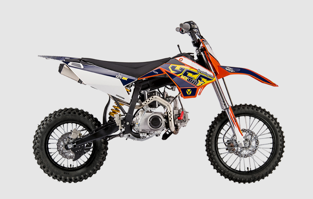 Представляем Вам одну из младших моделей в популярной линейке «больших» питбайков французского мотобренда – YCF Bigy 125MXE-KL1 на колесах 17/14 дюймов. Этот спортивный снаряд модельного ряда 2020 года станет оптимальным выбором для активного отдыха, тренировок и аматорских соревнований по мини-мотокроссу.В проверенной надежной раме питбайка установлен 4-тактный двигатель рабочим объемом 125см3 с 4-ступенчатой трансмиссией, работающий в паре с карбюратором Mikuni VM22. Запуск мотора осуществляется при помощи кнопки электростартера или традиционным способом, рычагом кик-стартера.