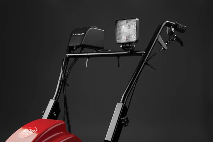 Рукоятку снегоуборщика можно отрегулировать в 2 положениях (85 и 90 см). Скорость хода регулируется курком с правой стороны рукоятки.
