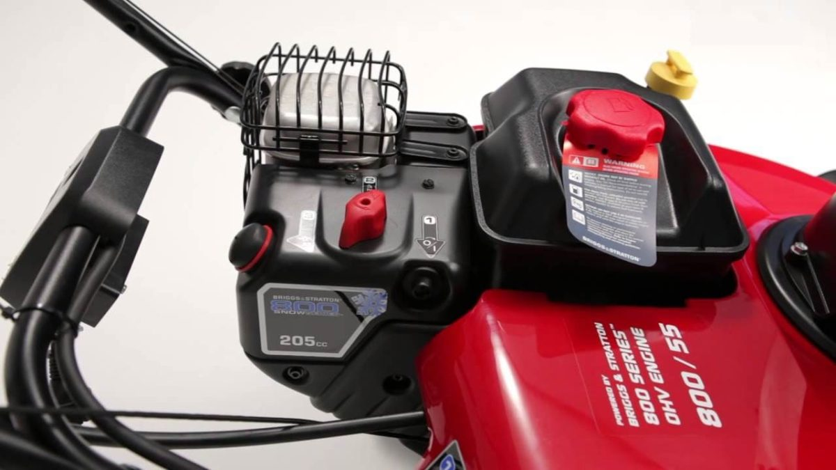 Бензиновый снегоотбрасыватель оснащен двигателем Briggs & Stratton 800 Snow Series с электростартером, разработанным специально для использования при отрицательных температурах. Направление и дальность выброса снега, которая достигает 8 м, регулируются механически. Ширина очистки составляет 55 см при максимальной высоте снежного покрова 32 см.