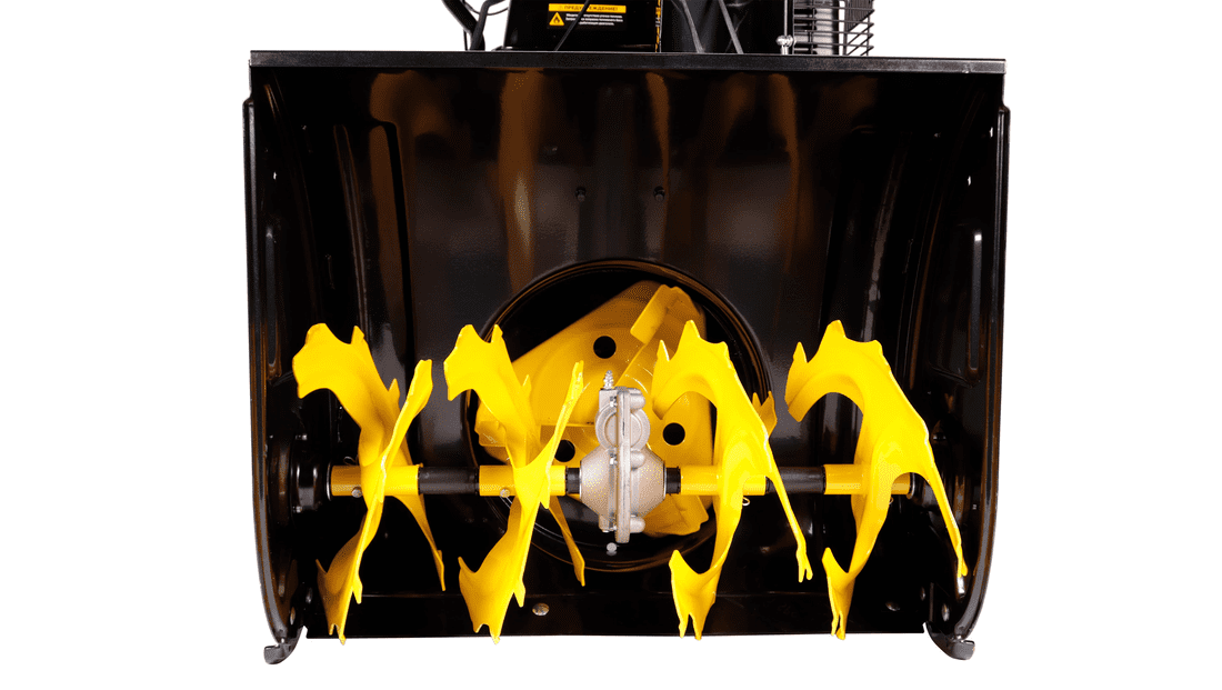 - Стальные шнеки с зазубринами легко справятся как со слежавшимся, так и с обледенелым снегом.
