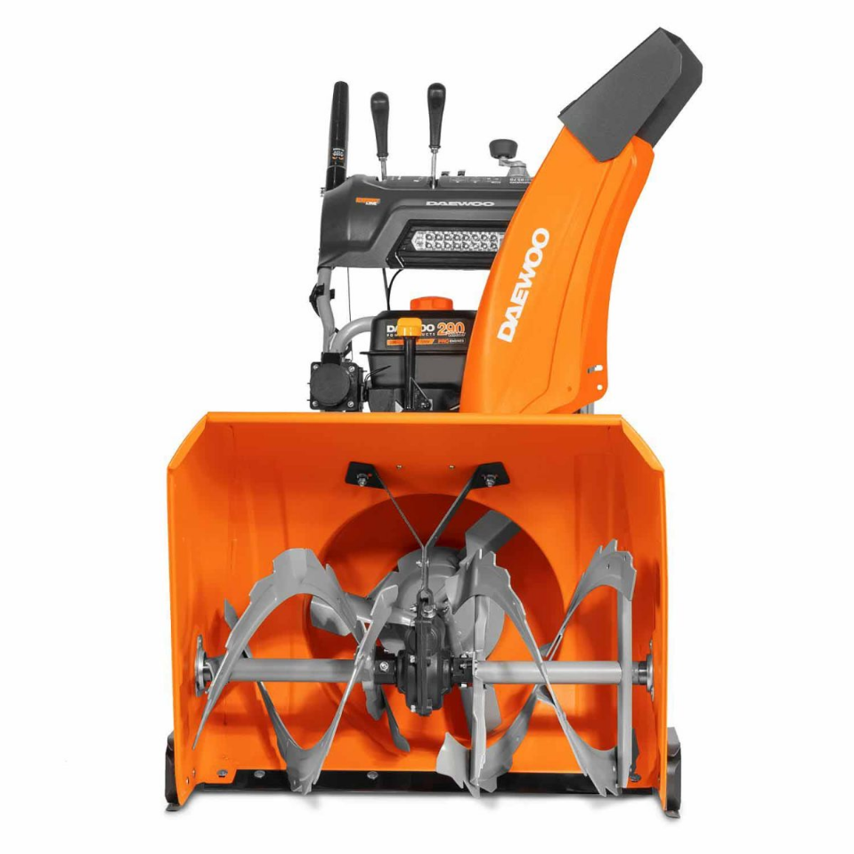 - Мощность. Фирменный двигатель DAEWOO 300 Snow (9 л.с.) стабильно работает в морозную погоду. Механика устройства минимизирует шум и вибрацию.