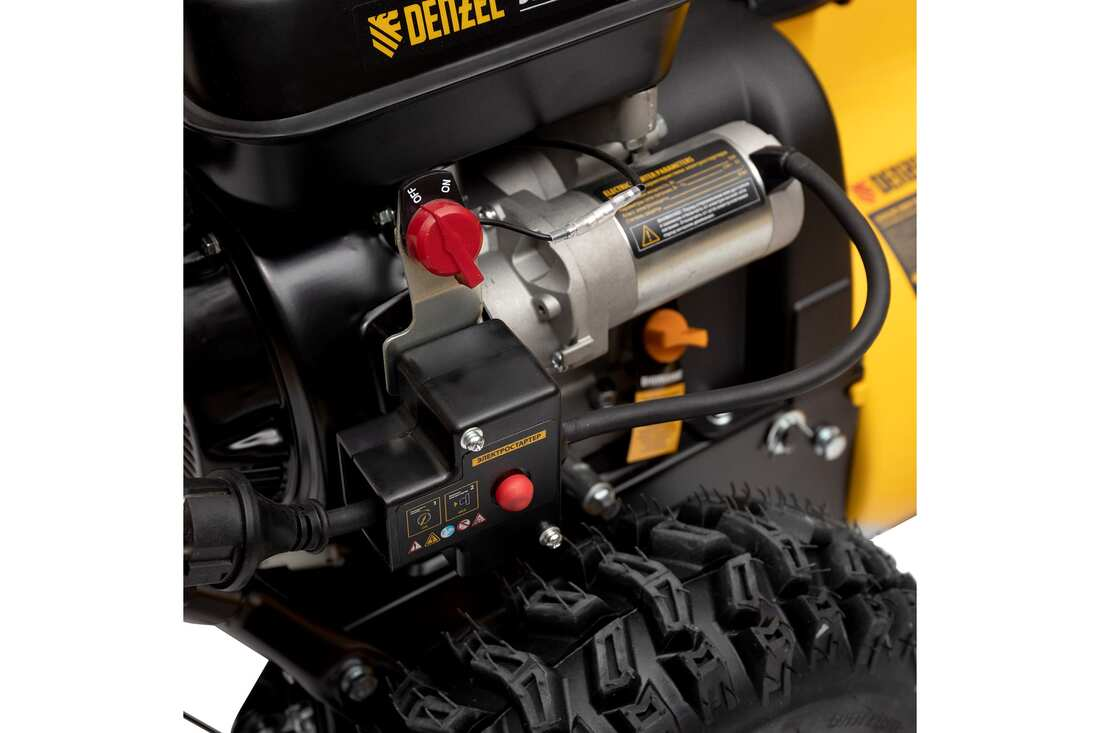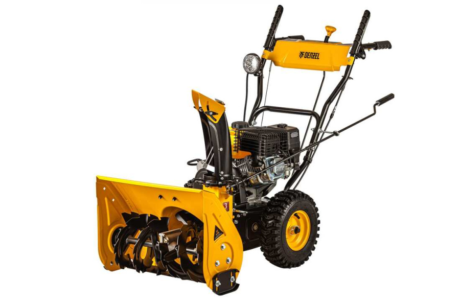 - Эффективность. Снегоуборщик Дензел SB 560 LP оборудован шнеком с ледорубами, который перерабатывает любой вид снега. Большой ковш (захват 56х43 см) позволяет быстро расчистить территорию.