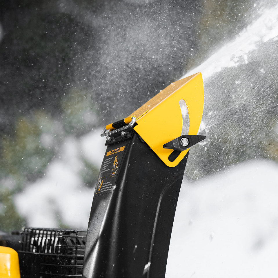 8. Выбор направления и дальности выброса снега — разгрузочный желоб поворачивается на 190° с помощью рукоятки.