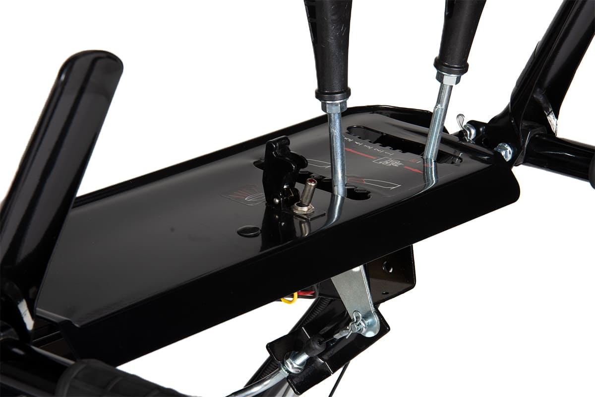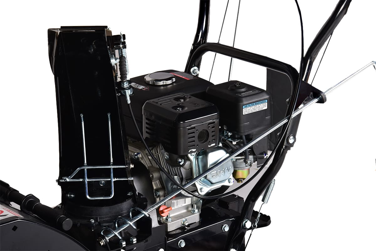 Зубчатая насечка шнека, усиленного ребрами жёсткости, успешно раскалывает лёд. Утолщенная крыльчатка выброса лопаточного типа позволяет отбрасывать снег до 12 метров. Самоходное шасси на колёсной и гусеничной базе снижает нагрузку на оператора и позволяет преодолевать небольшие уклоны.