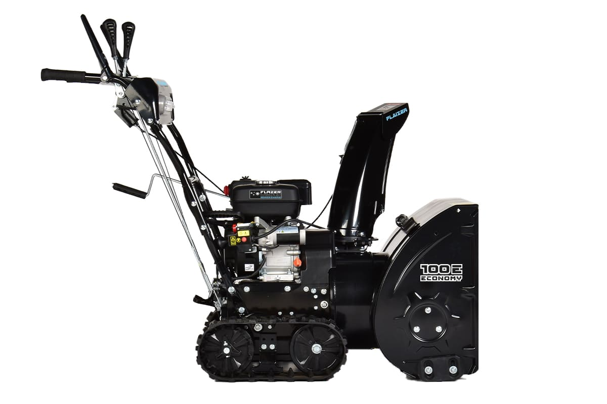 Этот снегоуборщик можно отнести к классу полупрофессиональной техники, направленной на уборку частной и общественной территорий площадью до 800-1000 м2. Гусеничное шасси, при достаточно высокой мощности в 8 л.с., даёт очень хорошее сцепление в сочетании с высоким крутящим моментом. При этом ширина уборки этого агрегата всего лишь 61 см, что даёт возможность при такой высоком КПД мощности обрабатывать лежалый обледеневший снег повышенной плотности – до 350-400 кг/м3. Общий вес снегоуборщика Flaizer 100 Е составляет всего 85 кг.