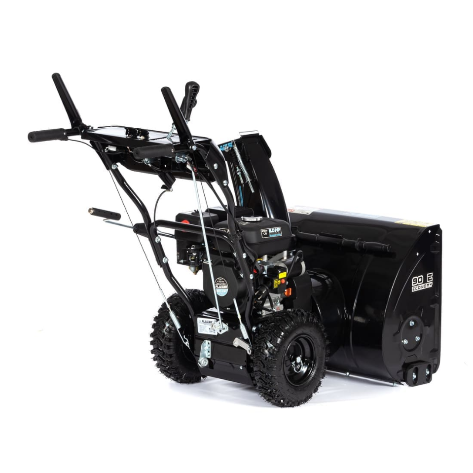 Зубчатая насечка шнека, усиленного ребрами жёсткости, успешно раскалывает лёд. Утолщенная крыльчатка выброса лопаточного типа позволяет отбрасывать снег до 12 метров. Самоходное шасси на колёсной и гусеничной базе снижает нагрузку на оператора и позволяет преодолевать небольшие уклоны.