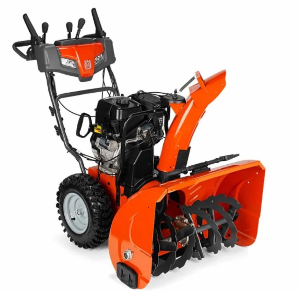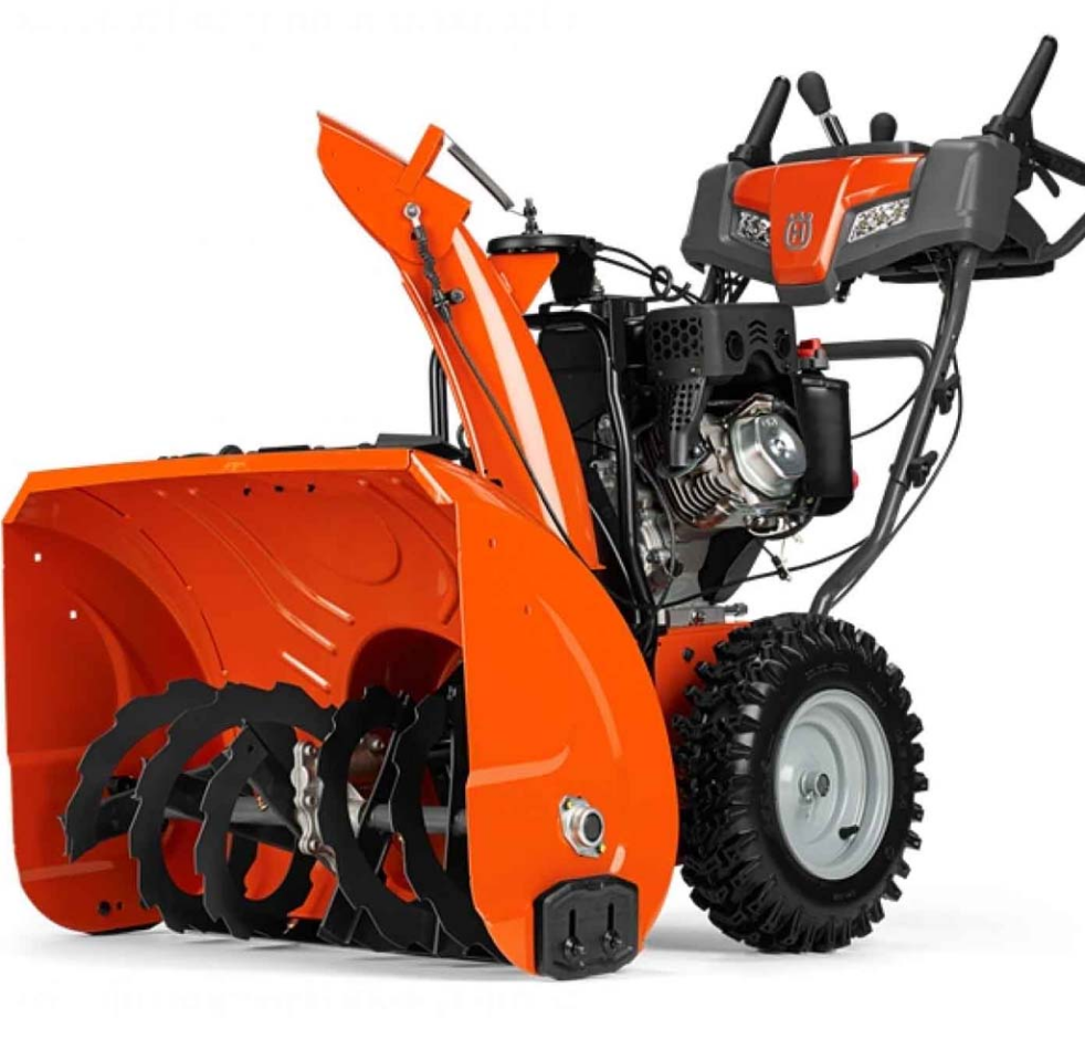 - Двухступенчатая система. Снег подается под кожух шнеком и затем выбрасывается крыльчаткой через раструб снегоотбрасывателя Husqvarna ST230P 9619100-90.