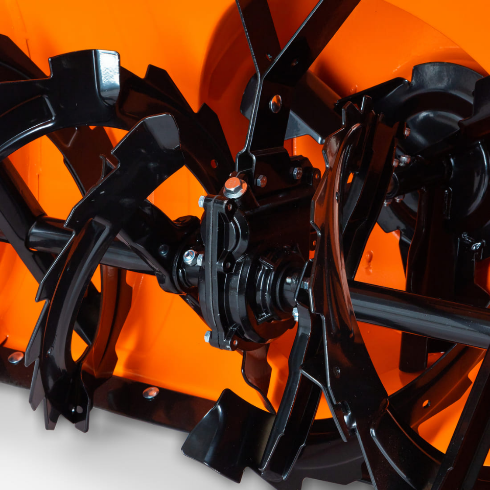 Дефлектор из усиленного металла даёт возможность менять направление выброса снега на 190 градусов при помощи рукоятки на корпусе машины, позволяя длительное время непрерывно заниматься уборкой практически всех типов снега. Стальной агрессивный шнек с добавлением хромомолибденового сплава позволяет эффективно справляться со слежавшимся снегом с элементами глетчерного льда.