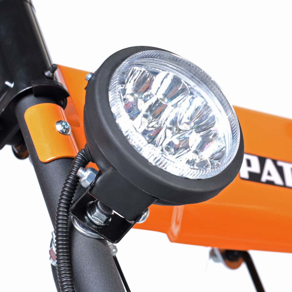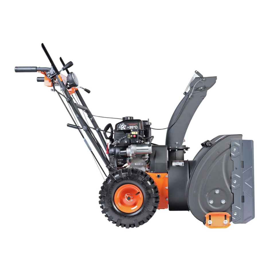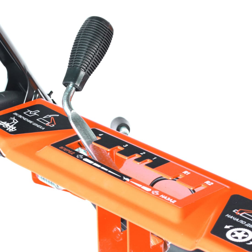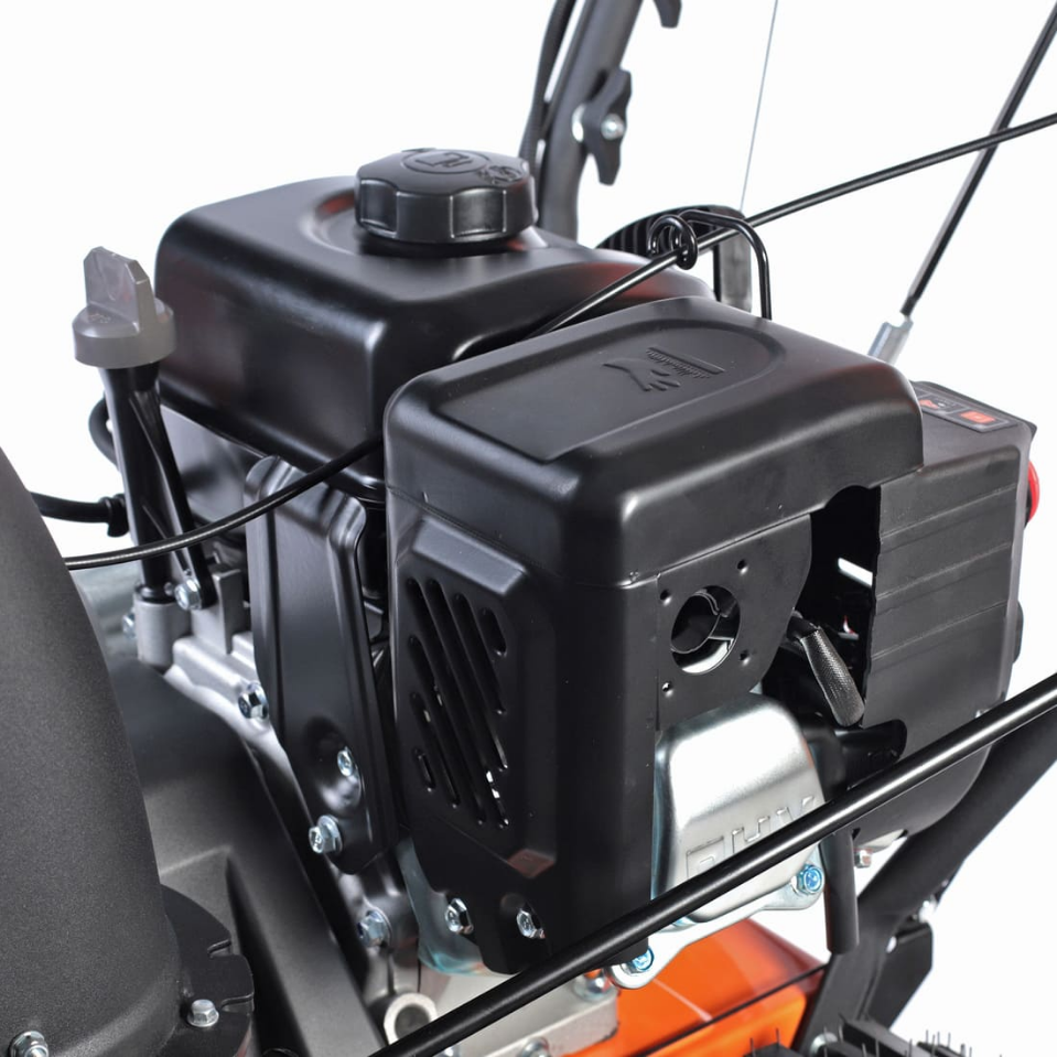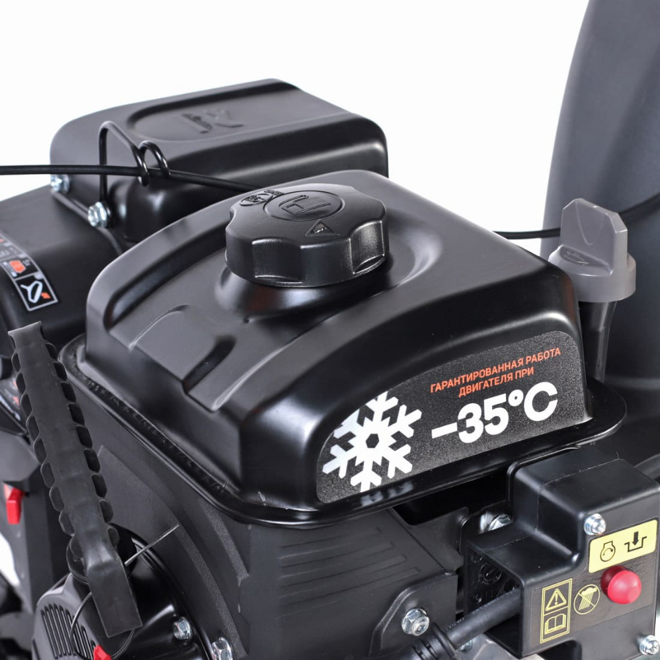 - Удобство. Для комфортной работы производитель оснастил аппарат подогревом рукоятки, светодиодной фарой и объемным топливным баком, чтобы не пришлось заправляться в середине процесса.
