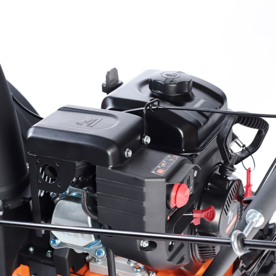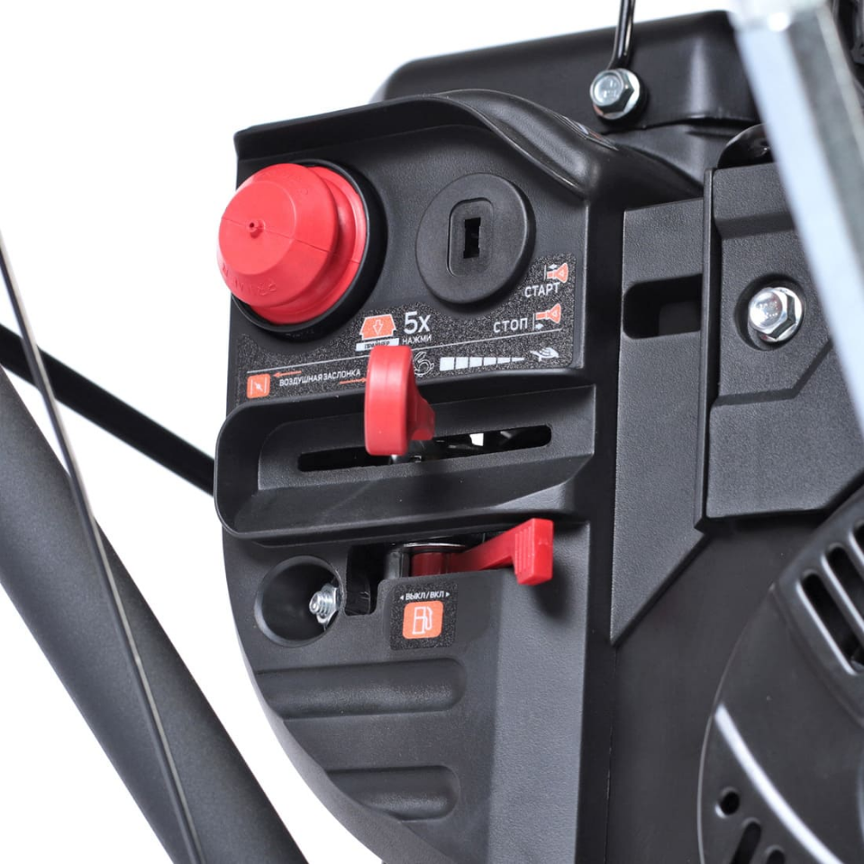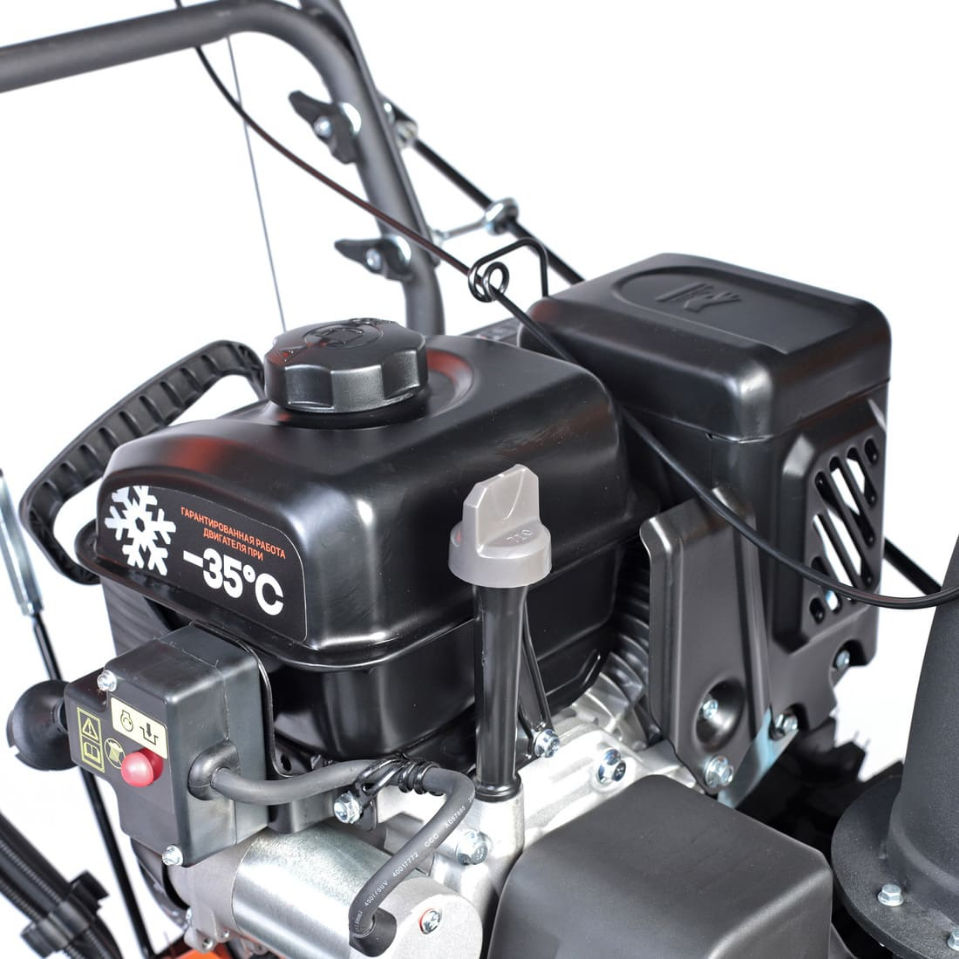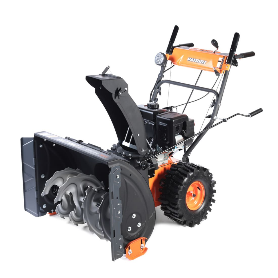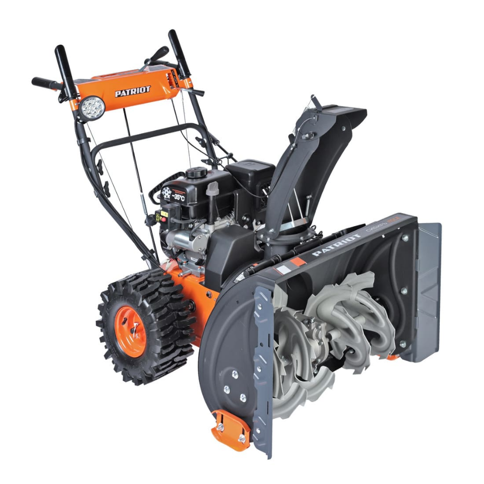 - Мощность. Четырехтактный двигатель зимнего типа от бренда Patriot (11 л.с.) функционирует при низкой температуре до -35 градусов, заводится нажатием одной кнопки на электростартере и имеет длительный срок службы.