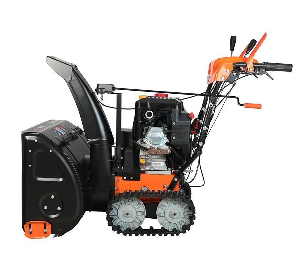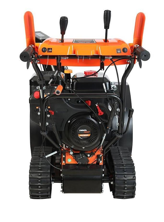 Снегоуборщик бензиновый PATRIOT СИБИРЬ 110CET – мощное снегоуборочное оборудование для эффективной работы на территориях с большой площадью. Самоходный снегоуборщик имеет гусеничный тип перемещения с функцией разворота при помощи блокировки дифференциала. Такая конструкция обеспечивает надежное сцепление даже в гололед. Ширина захвата за один проход составляет 710 мм, а высота убираемого снежного покрова – 530 мм. В устройстве агрегата предусмотрена возможность регулировки направления выброса снега в необходимом месте с углом поворота и направлением выброса 190/70 градусов. Двухступенчатая система очистки состоит шнеков, которые разбивают даже твердый слежавшийся снег. Металлические шнеки имеют диаметр 300 мм.