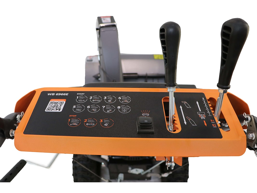 Бензиновый снегоуборщик Villartec WB 6966Е оснащен широкими колесами со специальным протектором резины, снижающим пробуксовку на заснеженной поверхности. Надежная трансмиссия предоставляет широкий выбор скоростей в зависимости от условий работы. Движение задним ходом позволяет вытащить снегоуборщик из сугроба. Регулировка высоты снегозаборника осуществляется при помощи специальных "лыж". Они необходимы при уборке снега на неровных поверхностях и дорожках с гравием. Снегоуборщик WB 6966Е оснащен подогревом ручек, что позволяет работать с комфортом в холодную погоду.